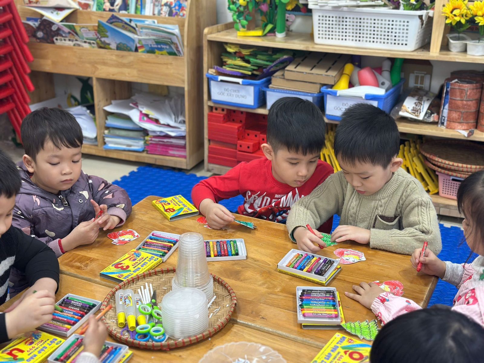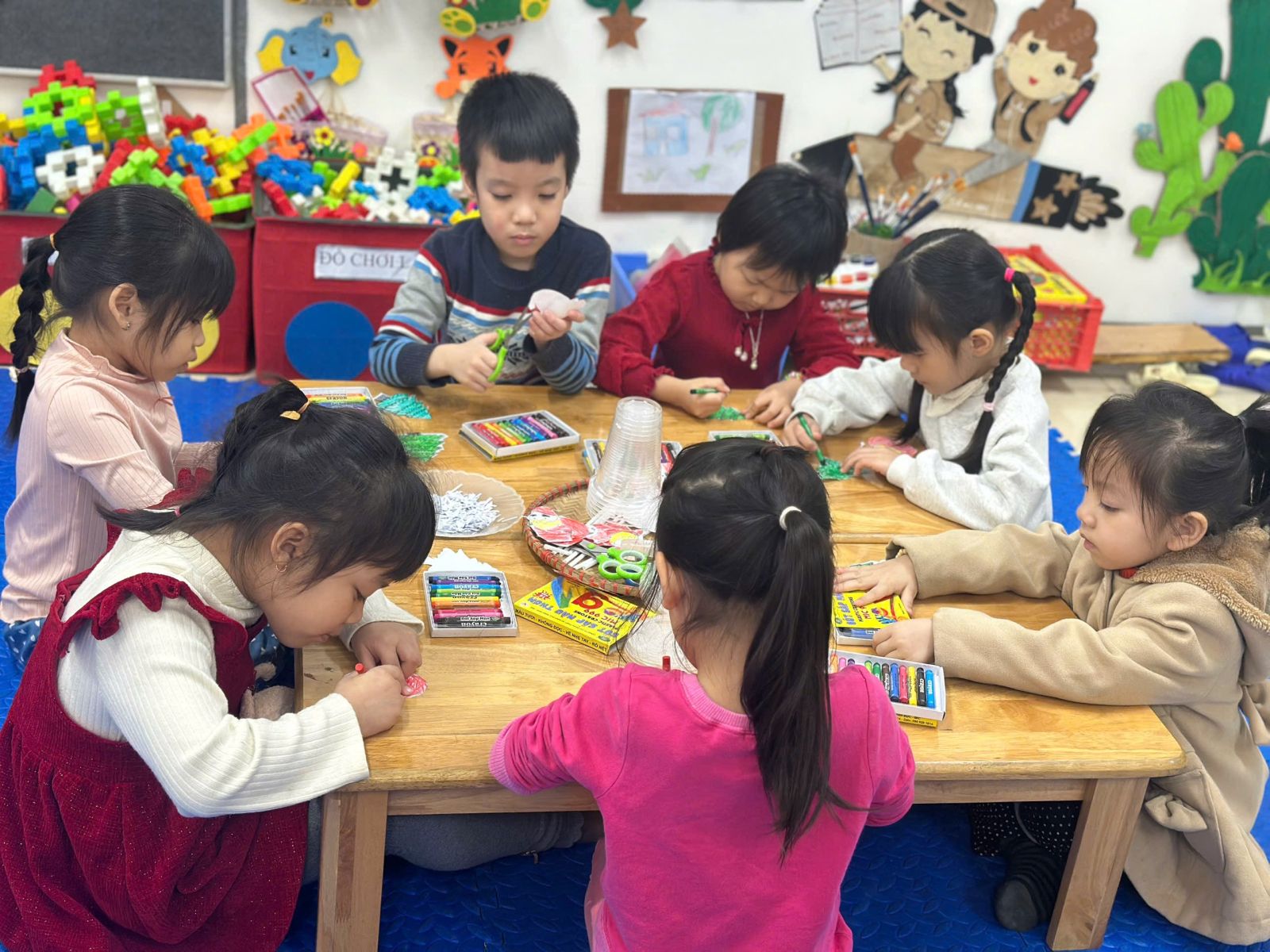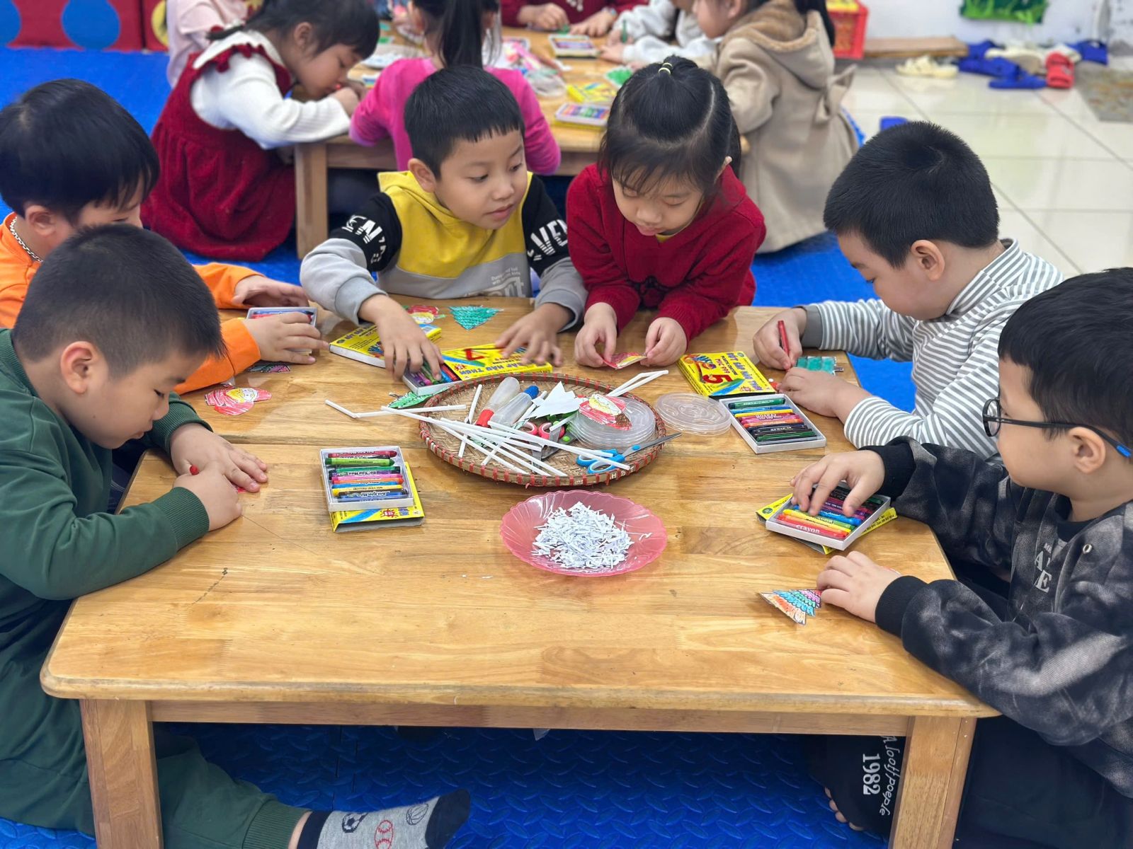 Hôm nay, các con lớp B5 đã tham gia hoạt động tạo hình “Làm nhà ông già Tuyết” – một hoạt động vừa vui nhộn vừa giàu tính sáng tạo. Với những nguyên