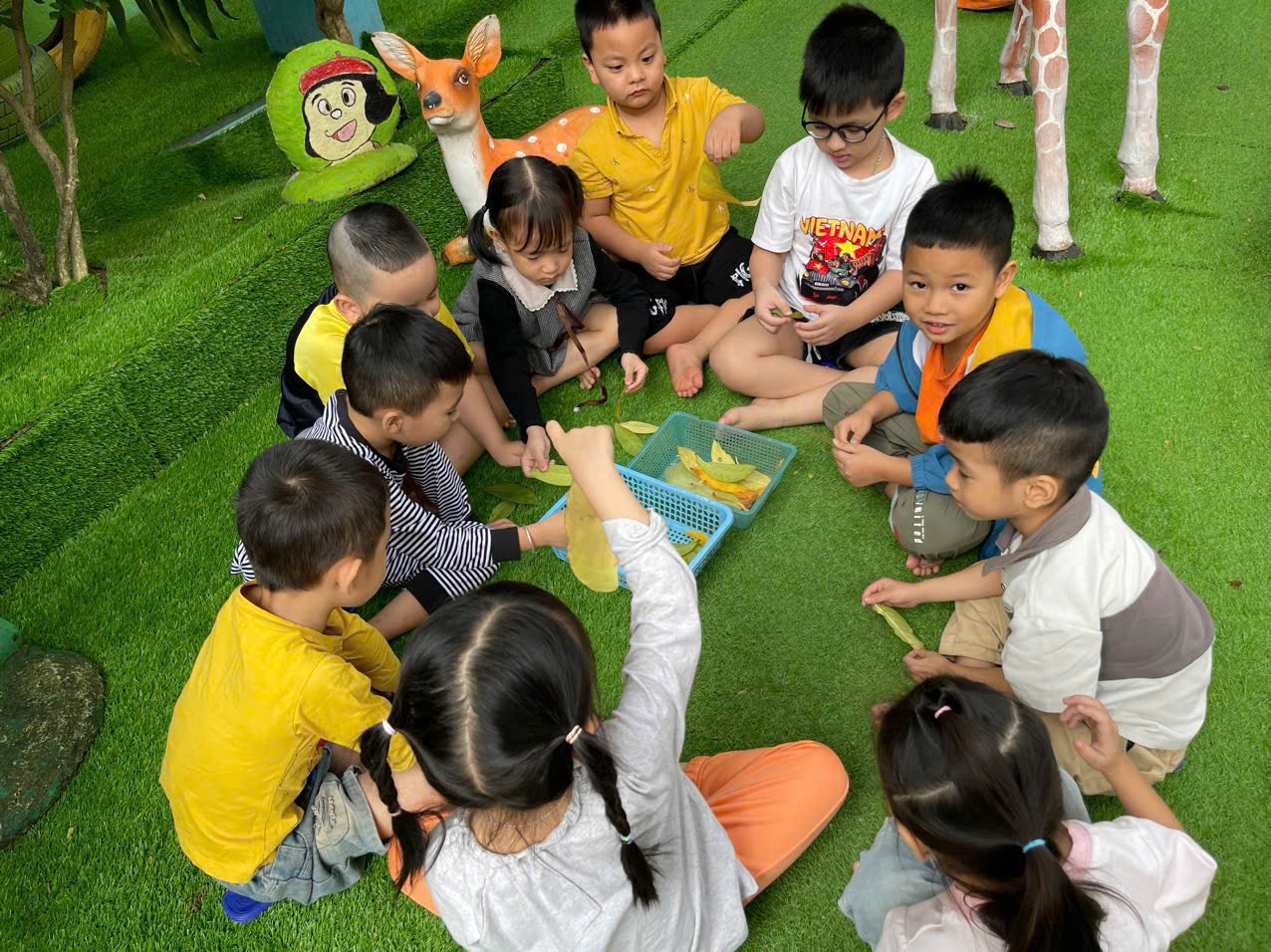 Mùa thu đến rồi phải không các bạn?? Và hôm nay các bạn nhỏ lớp C5 đã cùng nhau nhặt những lá rụng nó không chỉ giúp sân trường sạch đẹp hơn mà còn cùng nhau tham gia vào hoạt động chơi ngoài trời: Nhặt lá vàng làm đồ chơi nữa đấy !!!