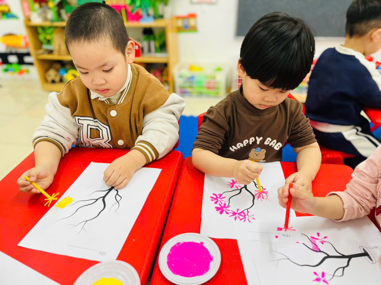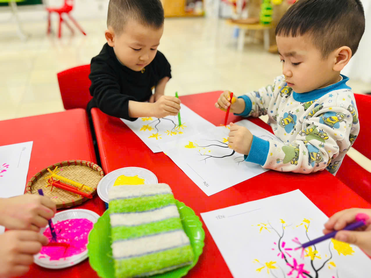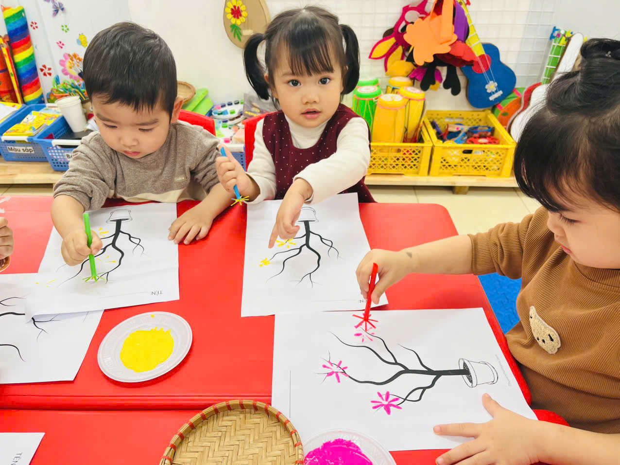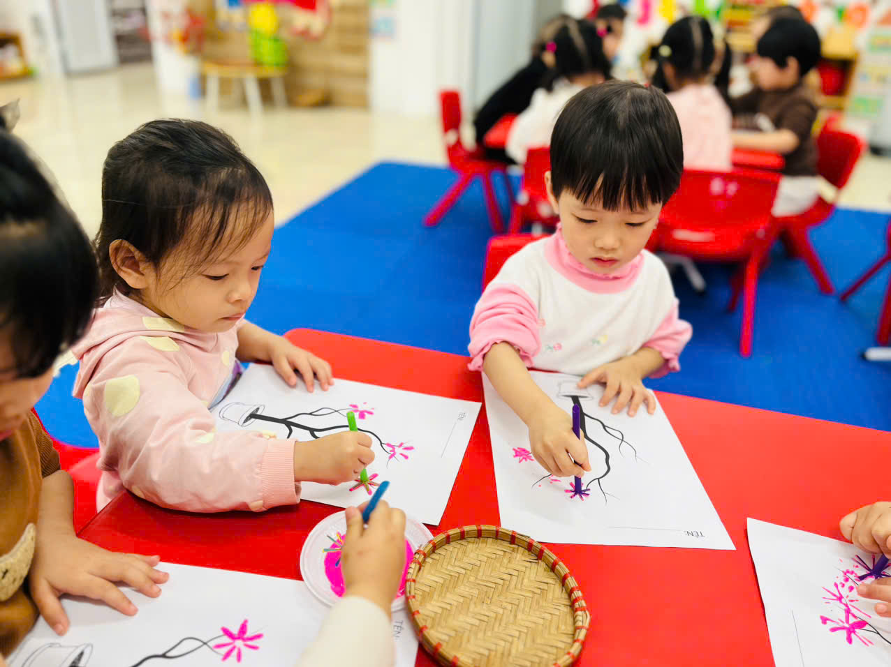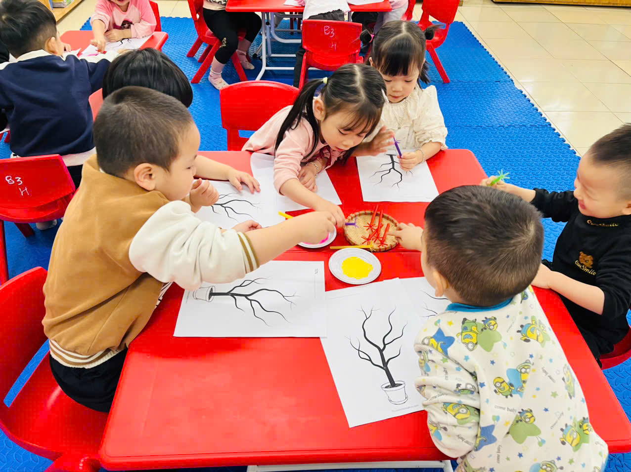 KHI MÙA XUÂN NỞ TRONG ĐÔI TAY NHỎ Từ những đồ dùng đơn giản, các bạn nhỏ lớp B3 đã cùng nhau “đánh thức” mùa xuân theo cách rất riêng của mình Không cần đào thật, không cần hoa mua sẵn, c
