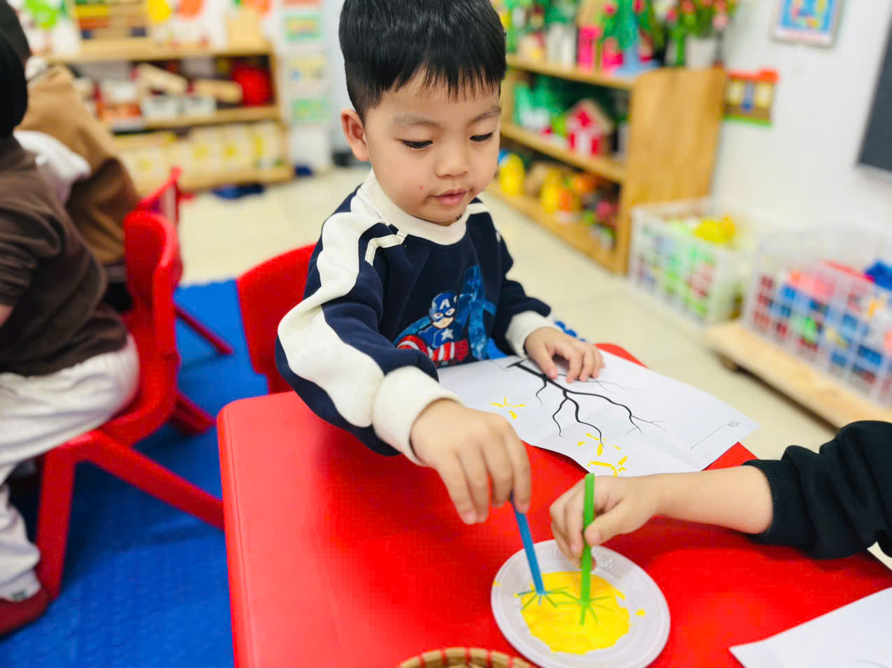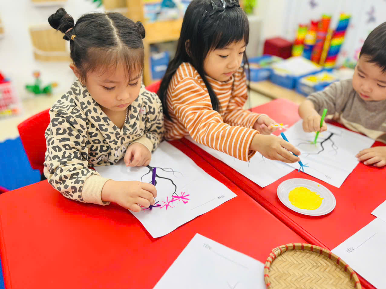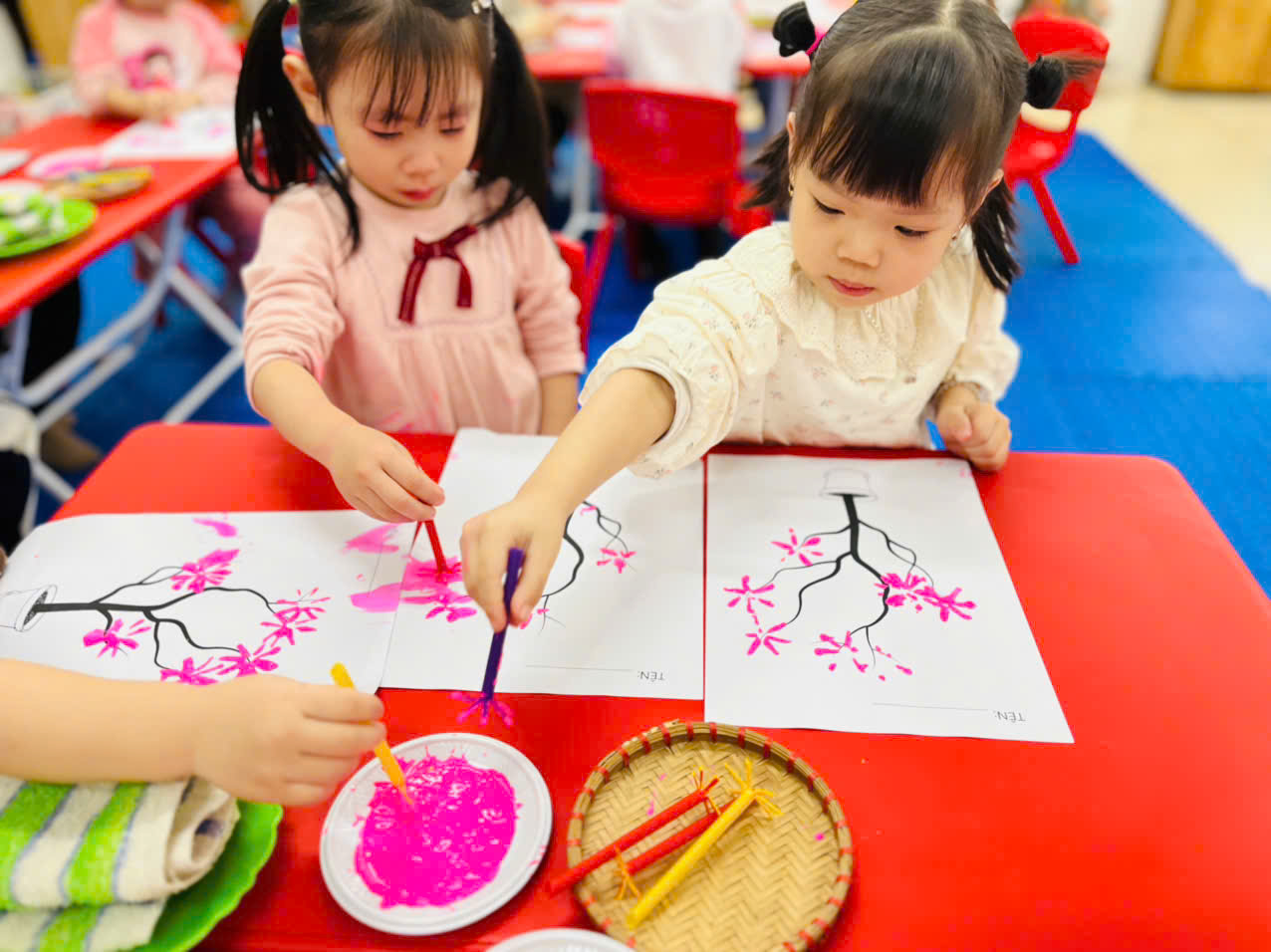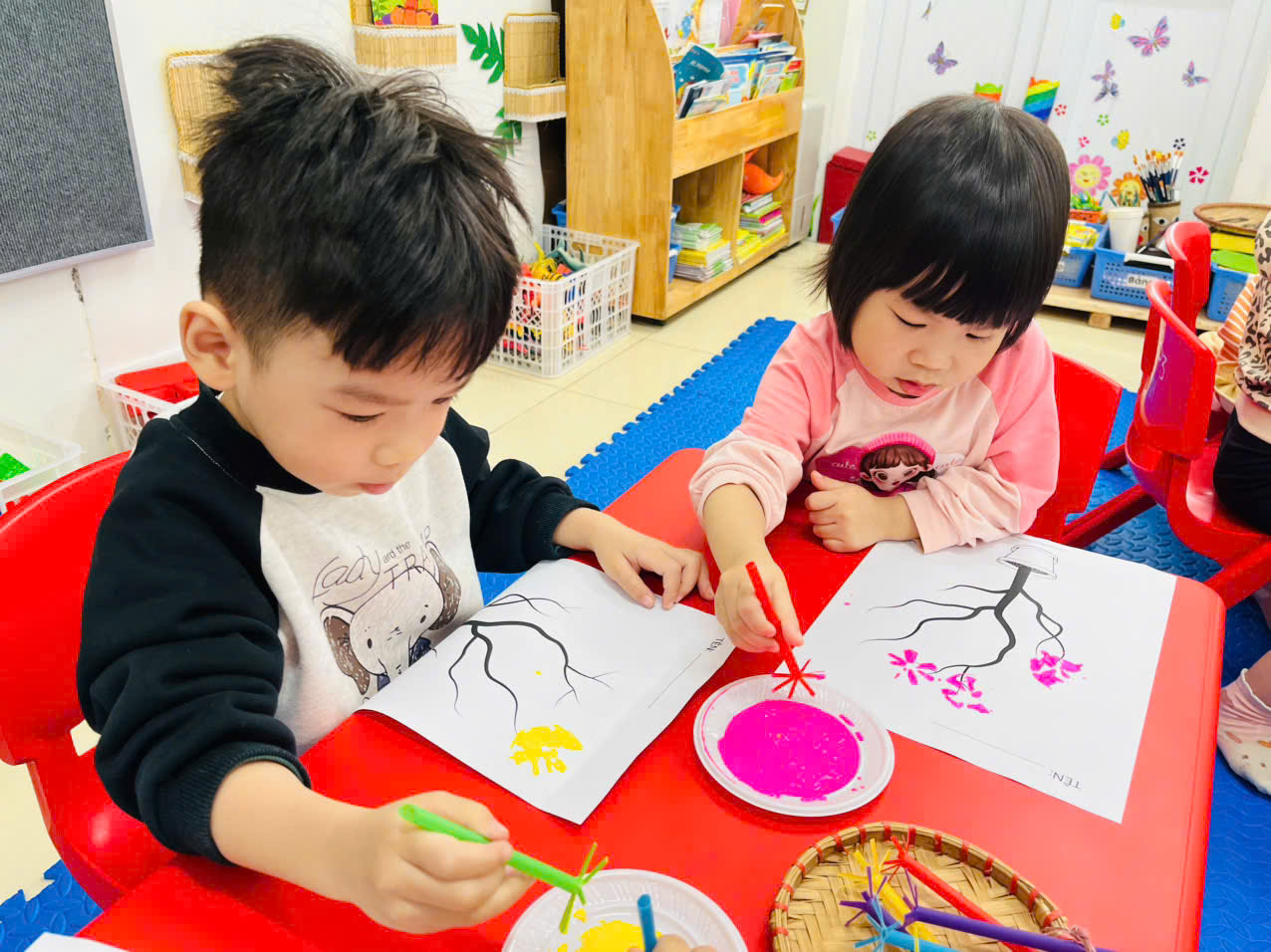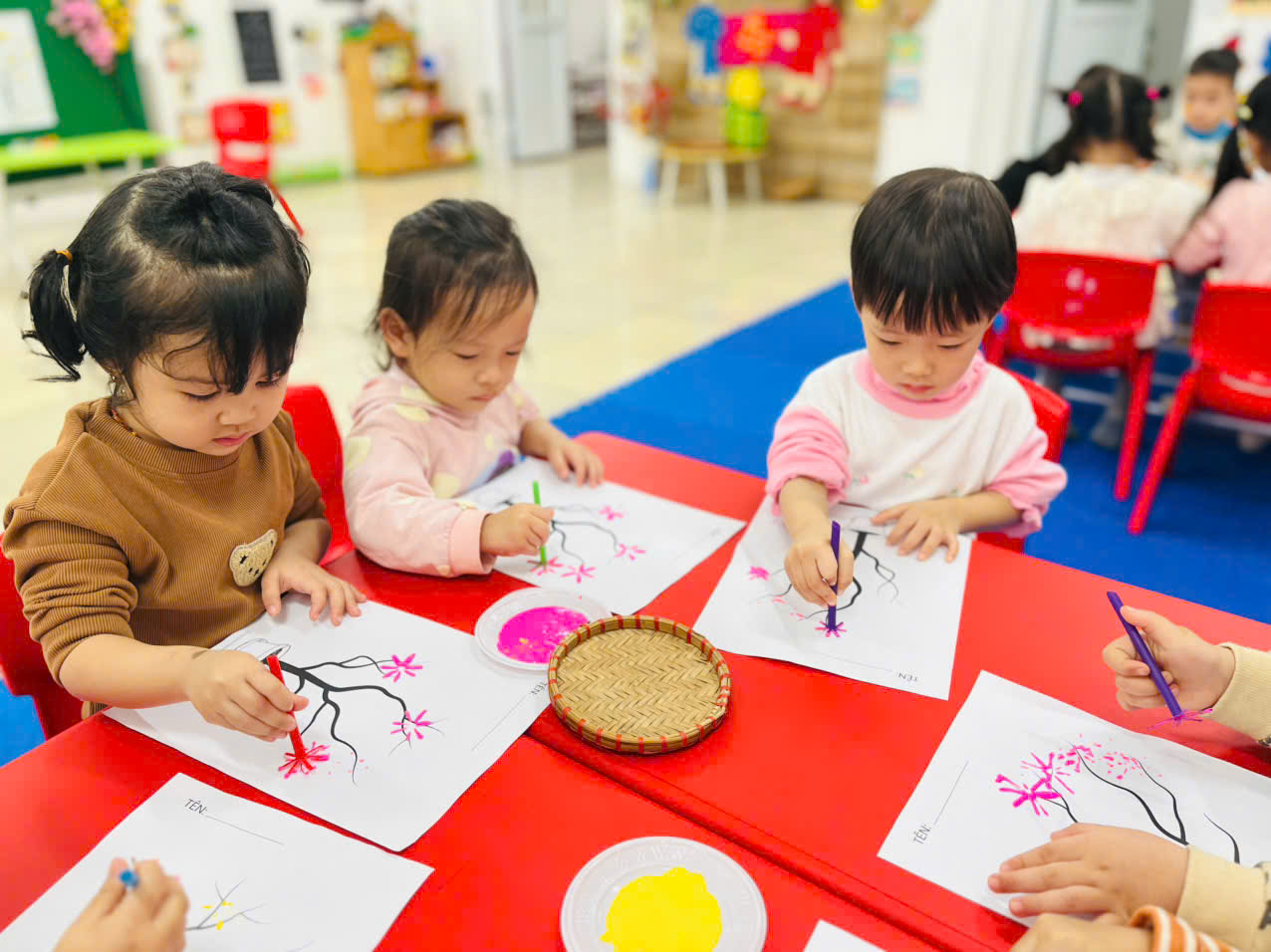 KHI MÙA XUÂN NỞ TRONG ĐÔI TAY NHỎ Từ những đồ dùng đơn giản, các bạn nhỏ lớp B3 đã cùng nhau “đánh thức” mùa xuân theo cách rất riêng của mình Không cần đào thật, không cần hoa mua sẵn, c