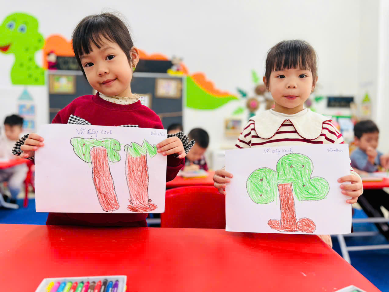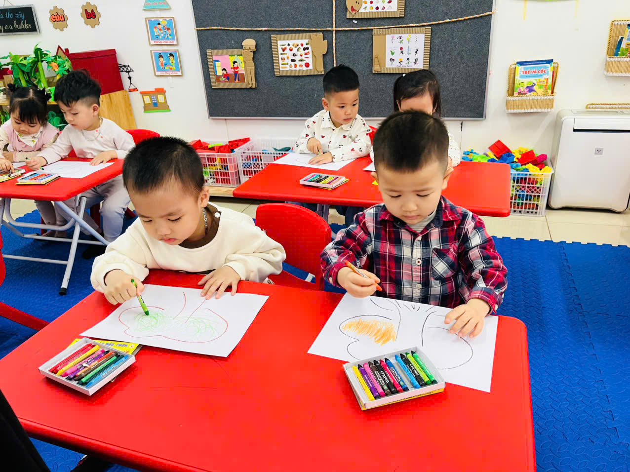 Thông qua hoạt động Các con được làm quen với các bộ phận của cây (rễ, thân, lá). Việc vẽ và tô màu cây xanh giúp trẻ hình thành tình yêu với thiên nhiên, hiểu được tầm quan trọng của việc bảo vệ môi trường Mời bố mẹ cùng xem những hình ảnh của các con trong buổi học ngày hôm nay ạ