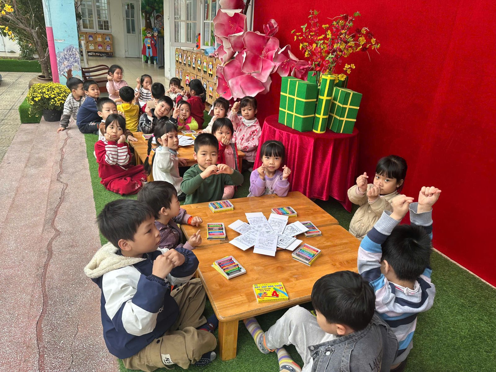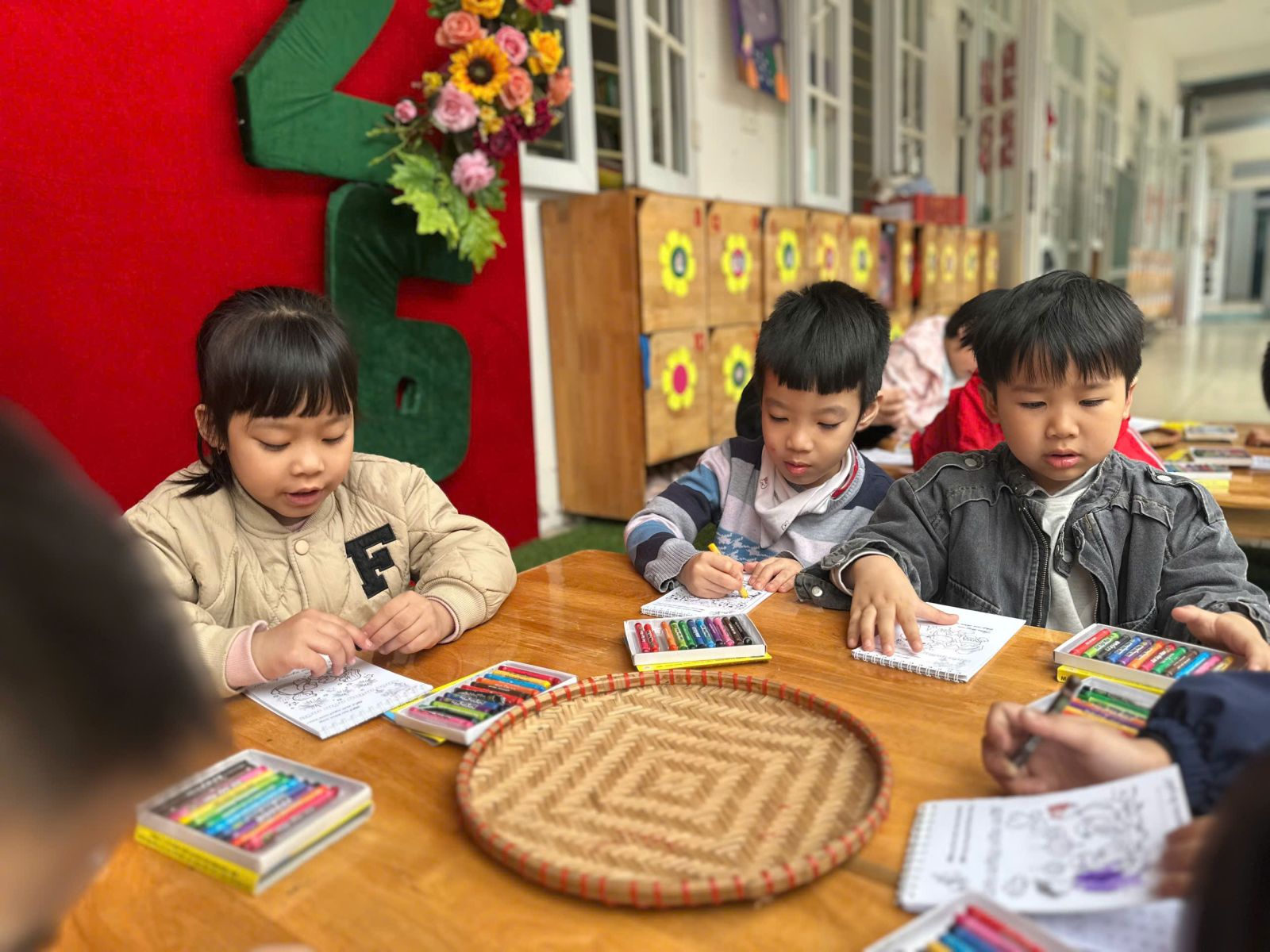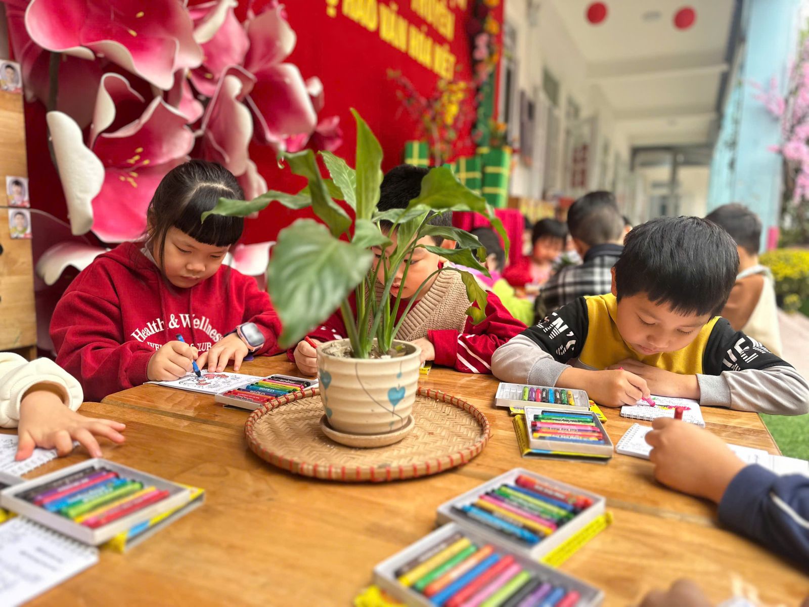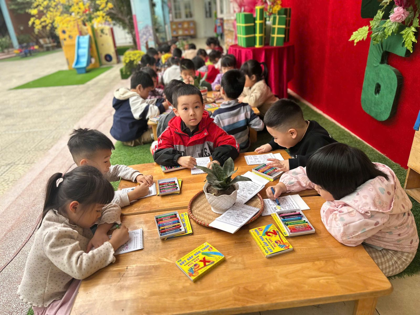 Hoạt động tô màu lịch Tết năm 2026 giúp trẻ hiểu về ngày Tết cổ truyền của dân tộc, biết Tết là thời điểm bắt đầu một năm mới, tạo cho trẻ cảm xúc vui tươi, háo hức đón xuân. • Thông qua việc tô màu các hình ảnh quen thuộc trong ngày Tết như hoa đào, hoa mai, bánh chưng, câu đối đỏ, trẻ được làm quen và ghi nhớ các nét đẹp văn hóa truyền thống, góp phần giáo dục tình yêu quê hương, đất nước. Hoạt động tạo hình “ trang trí lịch tết 2026” của các con lớp B5 mời các cô cùng các bạn đó