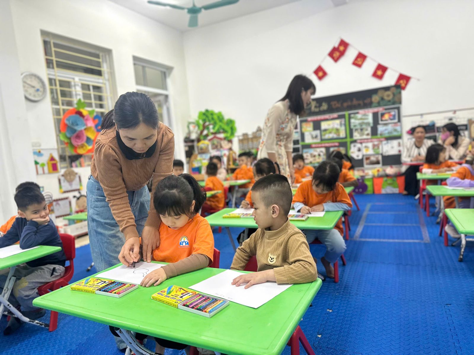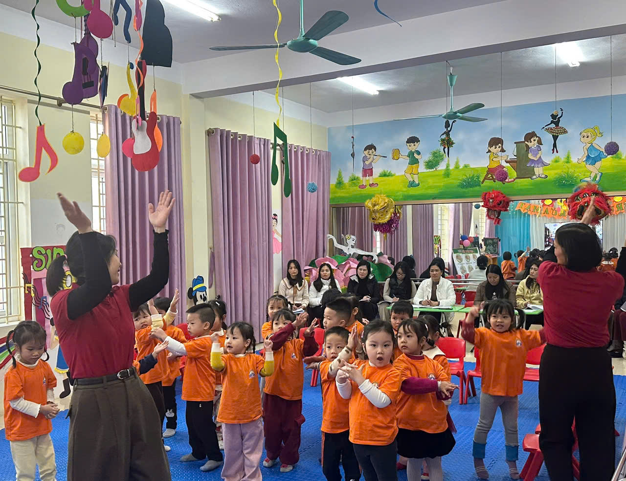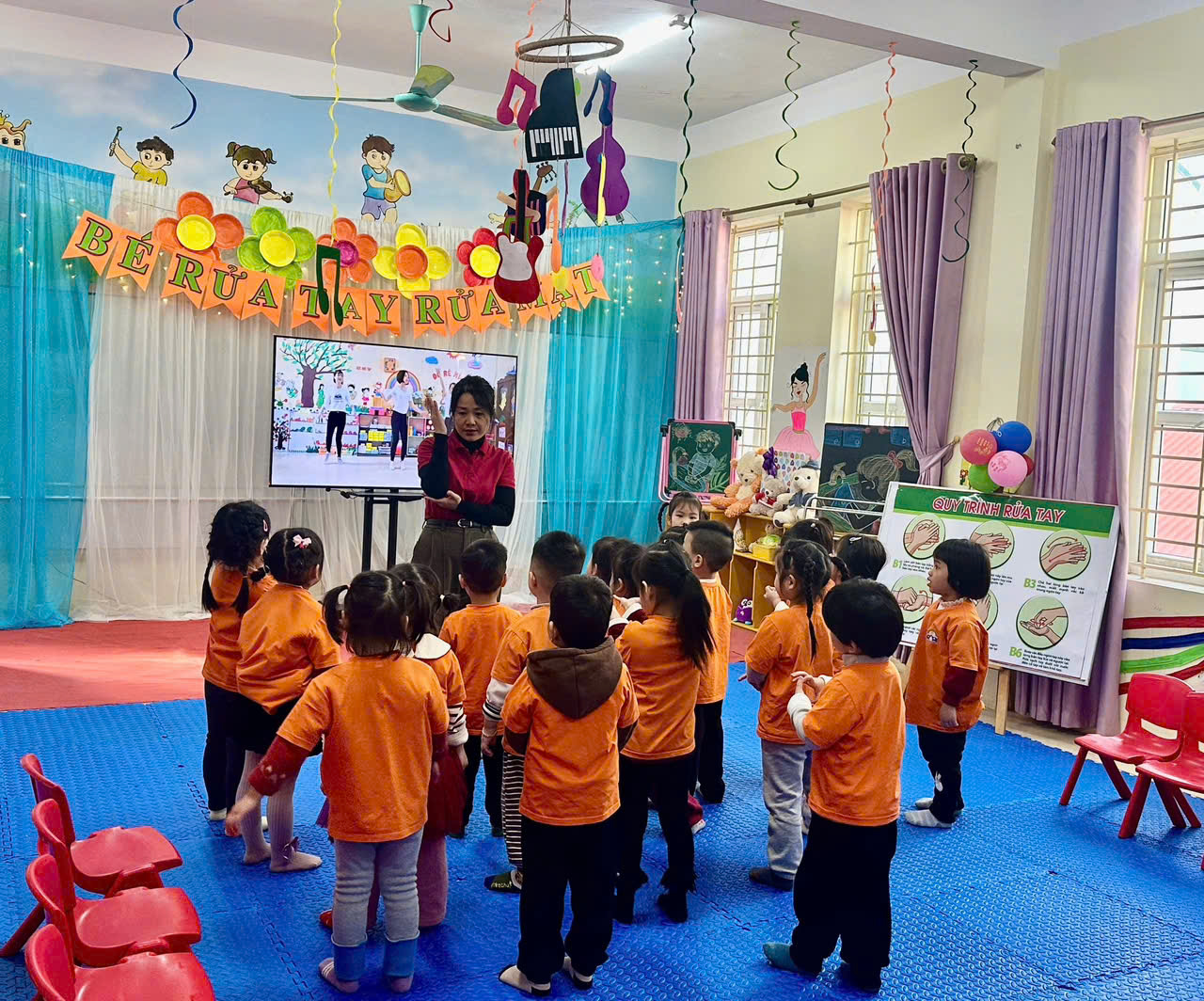 Trường Mầm non Hai Bà Trưng đã tổ chức sinh hoạt chuyên môn theo hướng nghiên cứu bài học với nội dung:Hoạt động học vẽ con gà trống, Hoạt động góc, Rửa tay, rửa mặt và tổ chức bữa ăn cho trẻ.