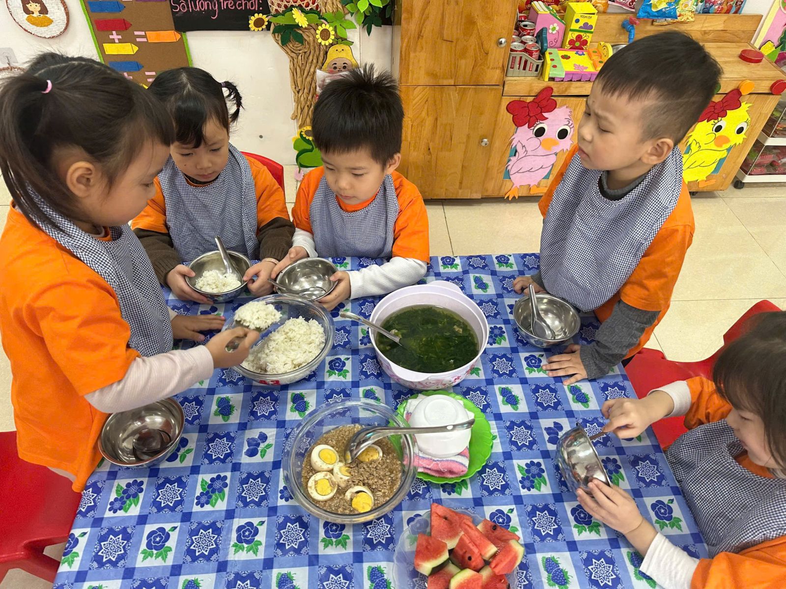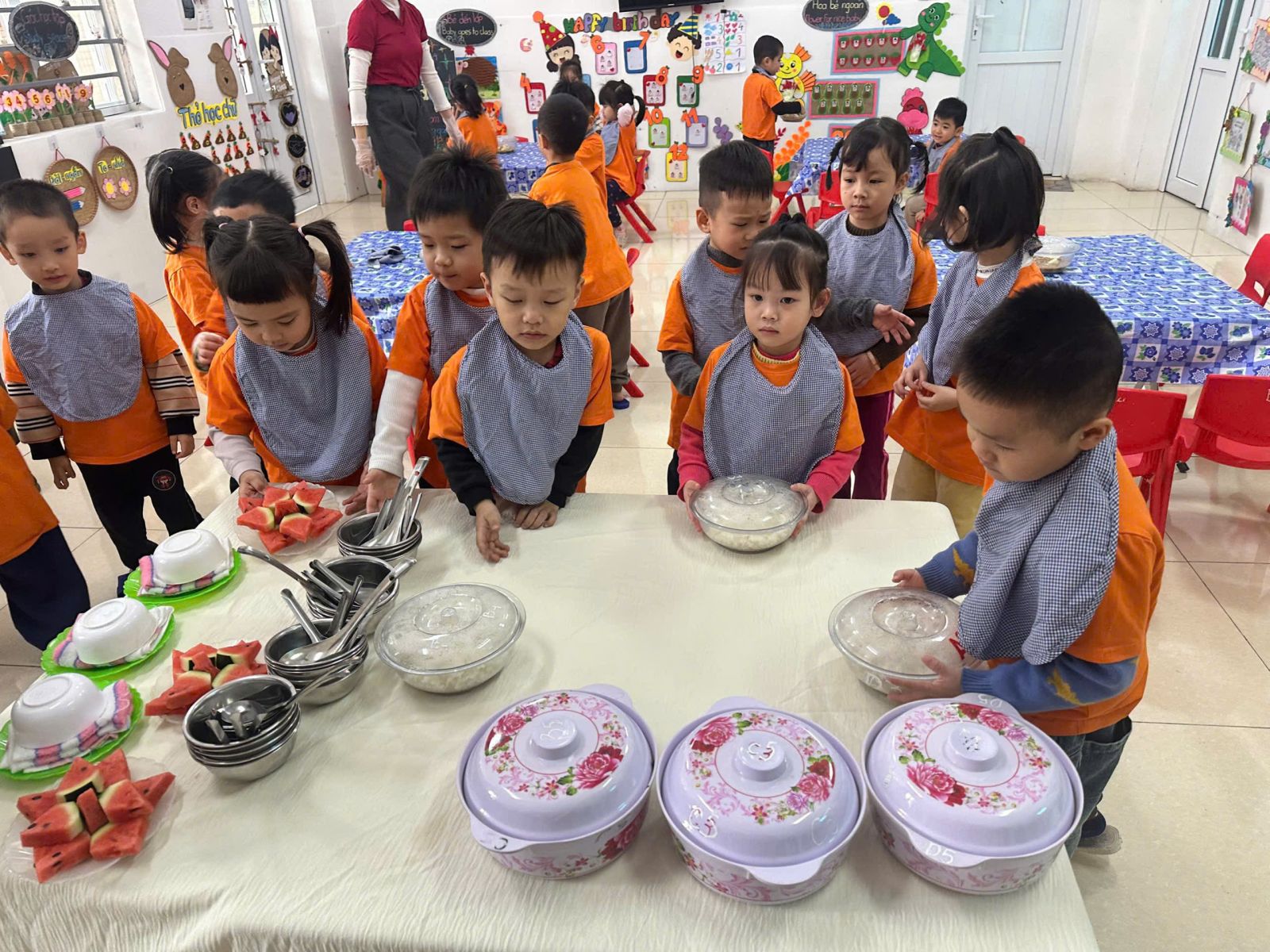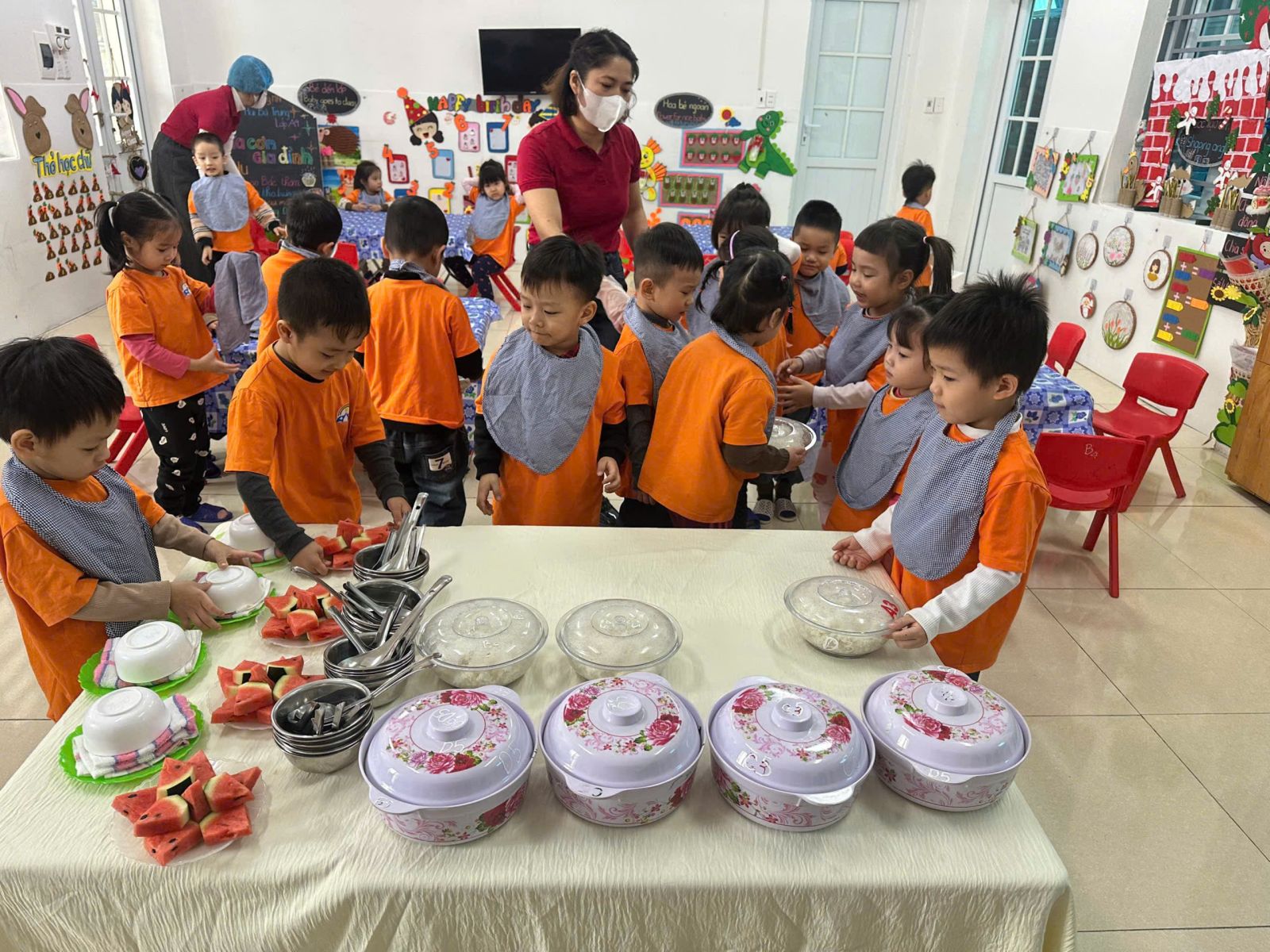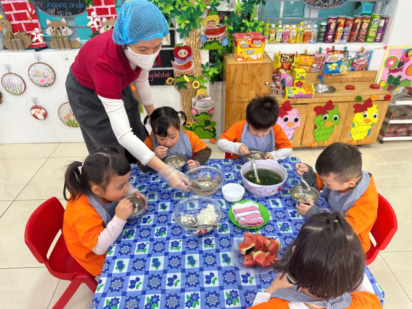 a mặt và tổ chức bữa ăn cho trẻ.