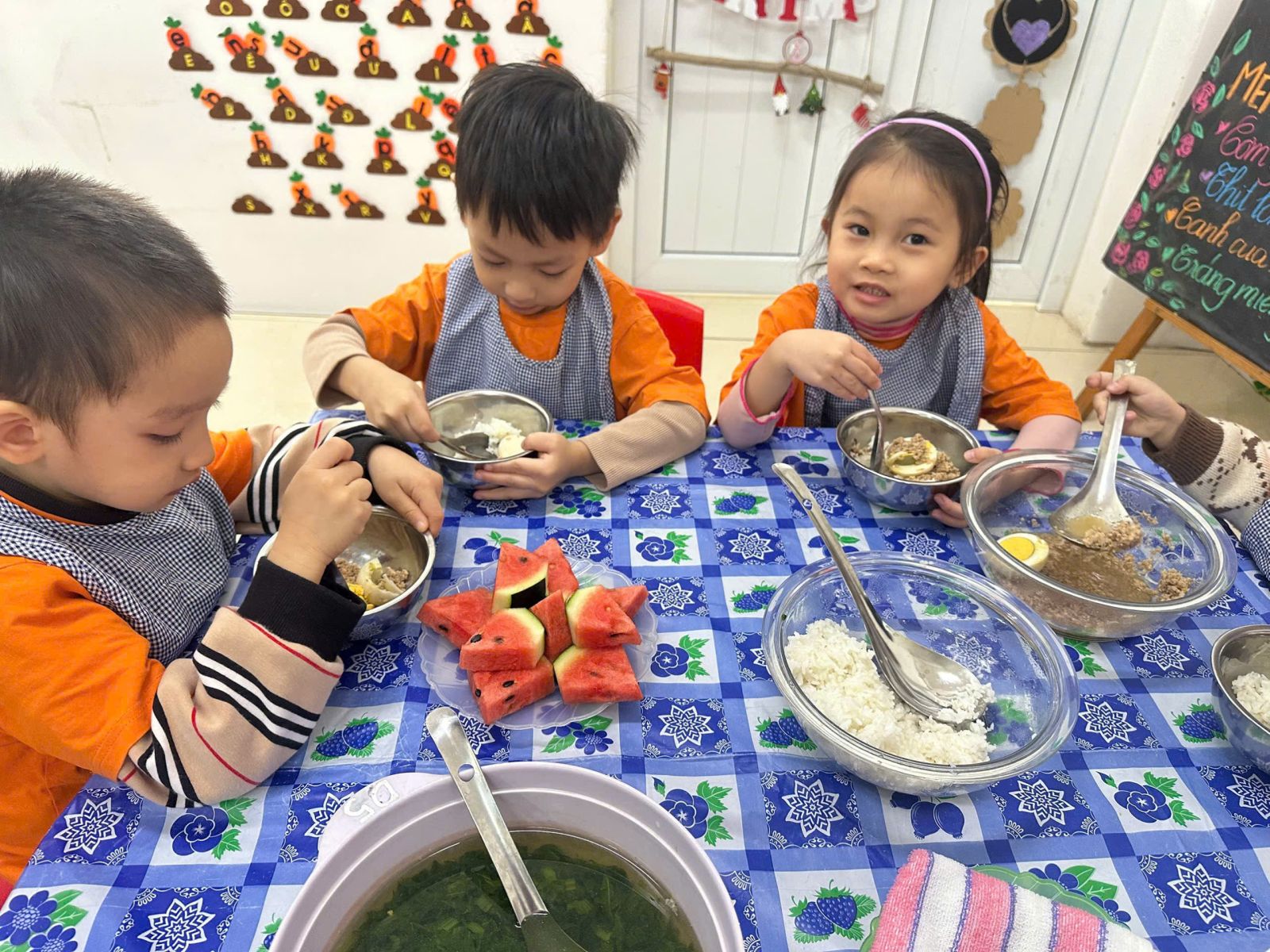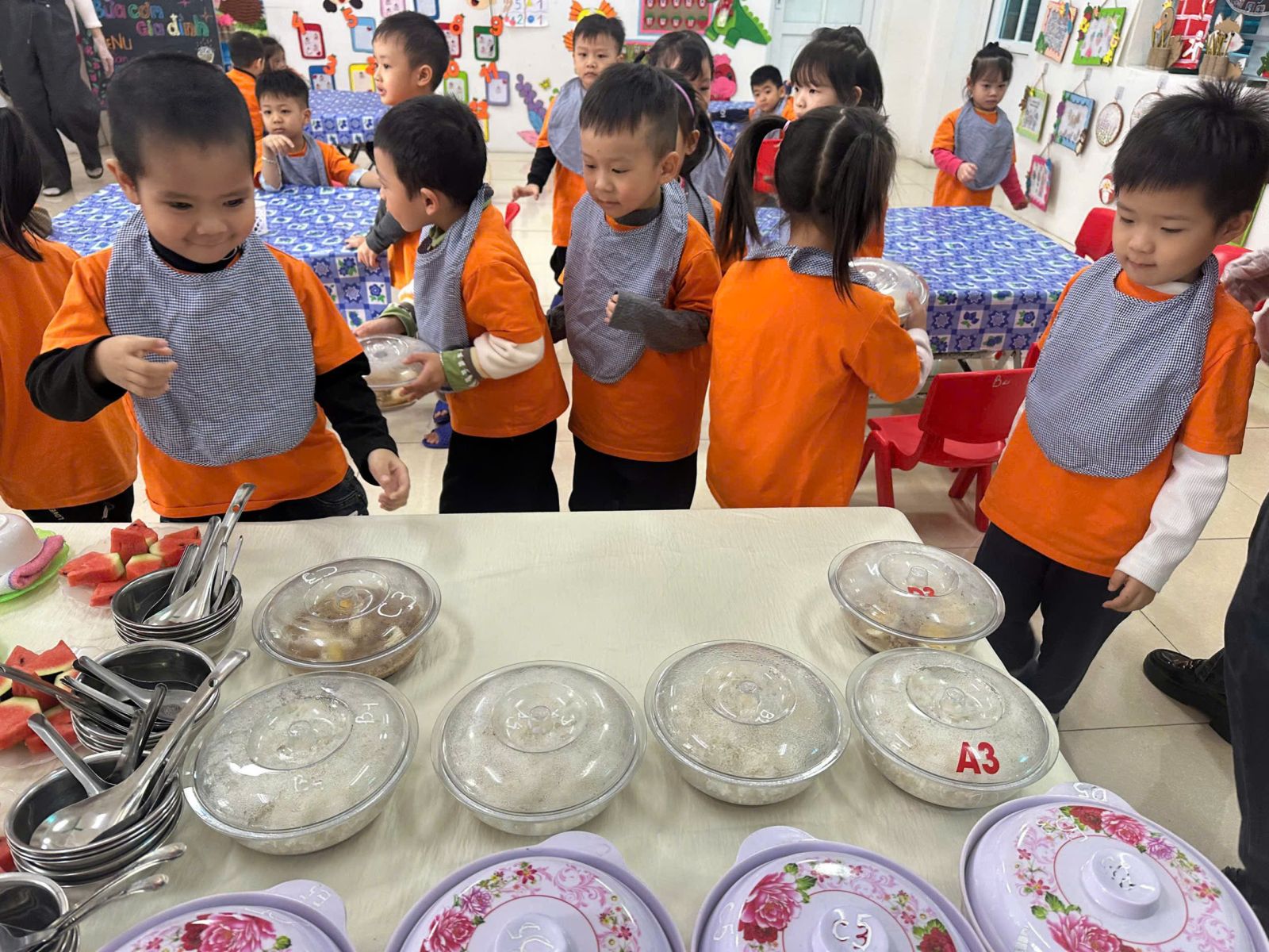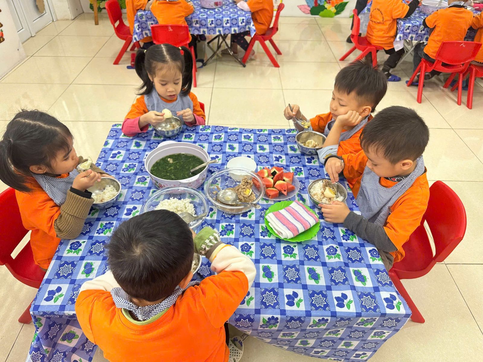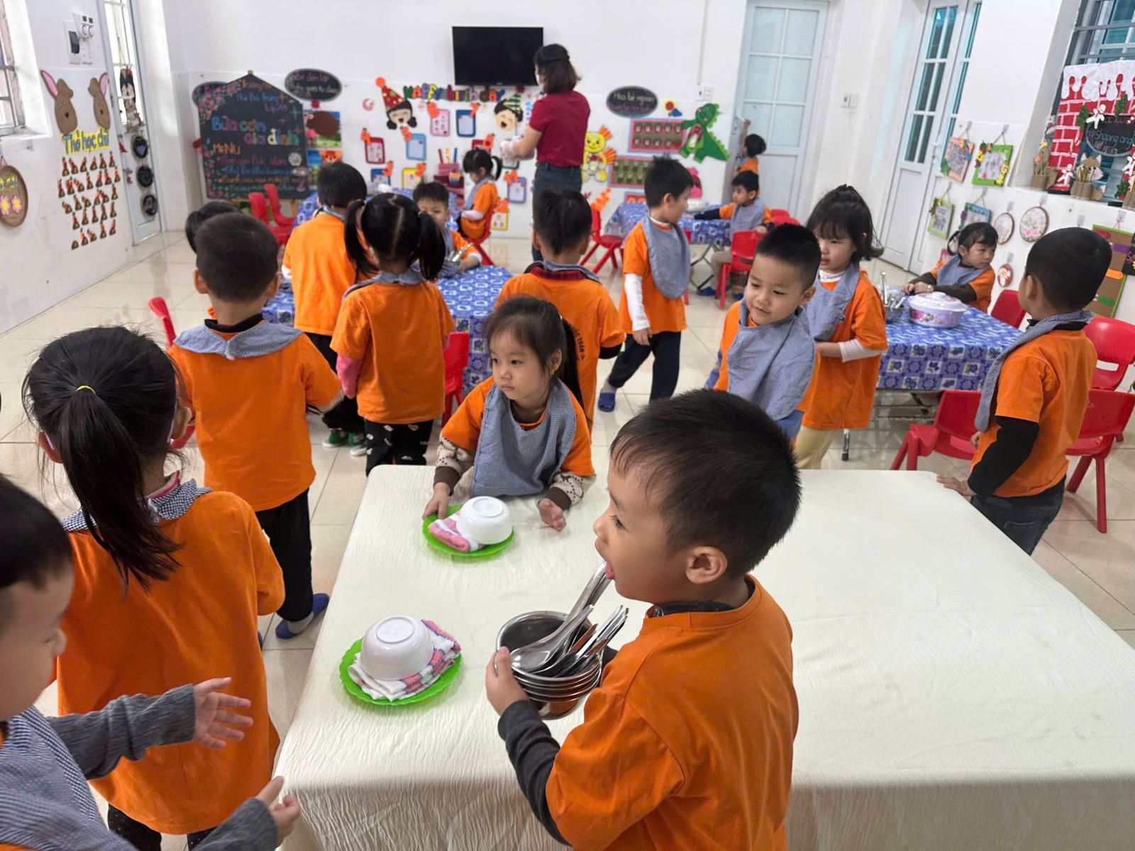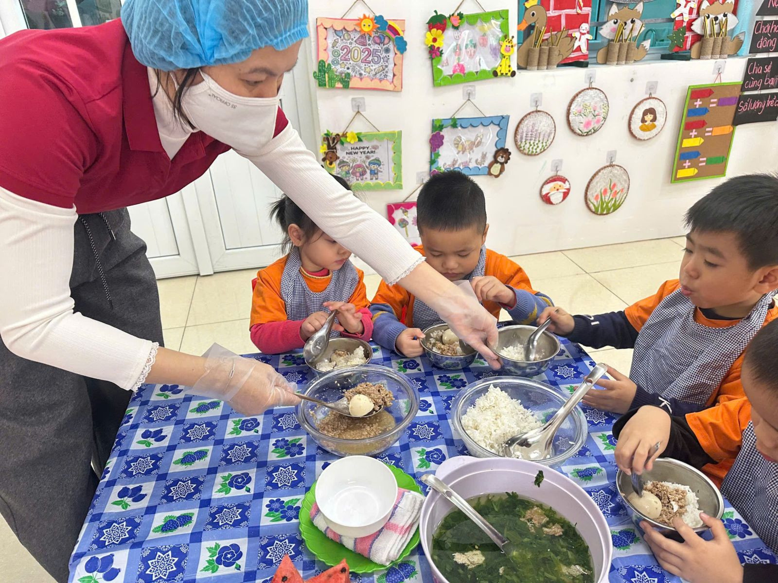 a mặt và tổ chức bữa ăn cho trẻ.