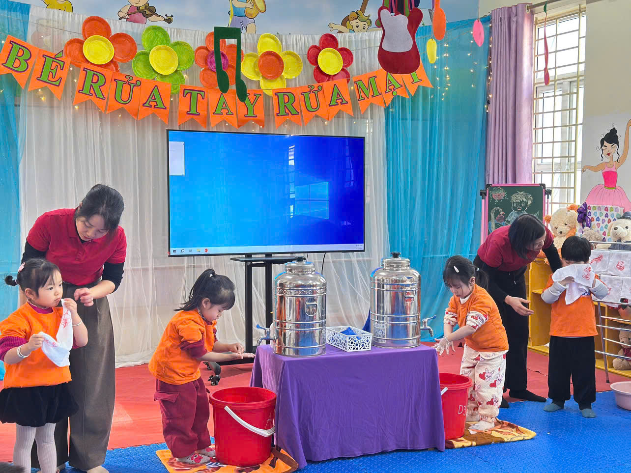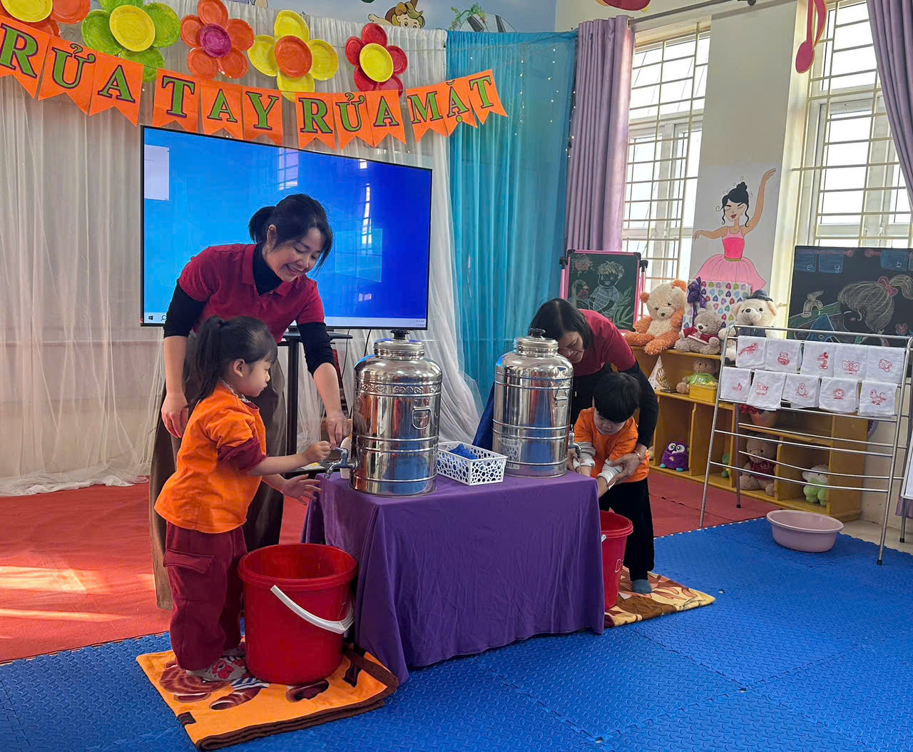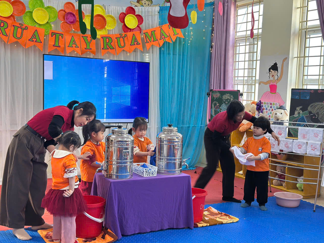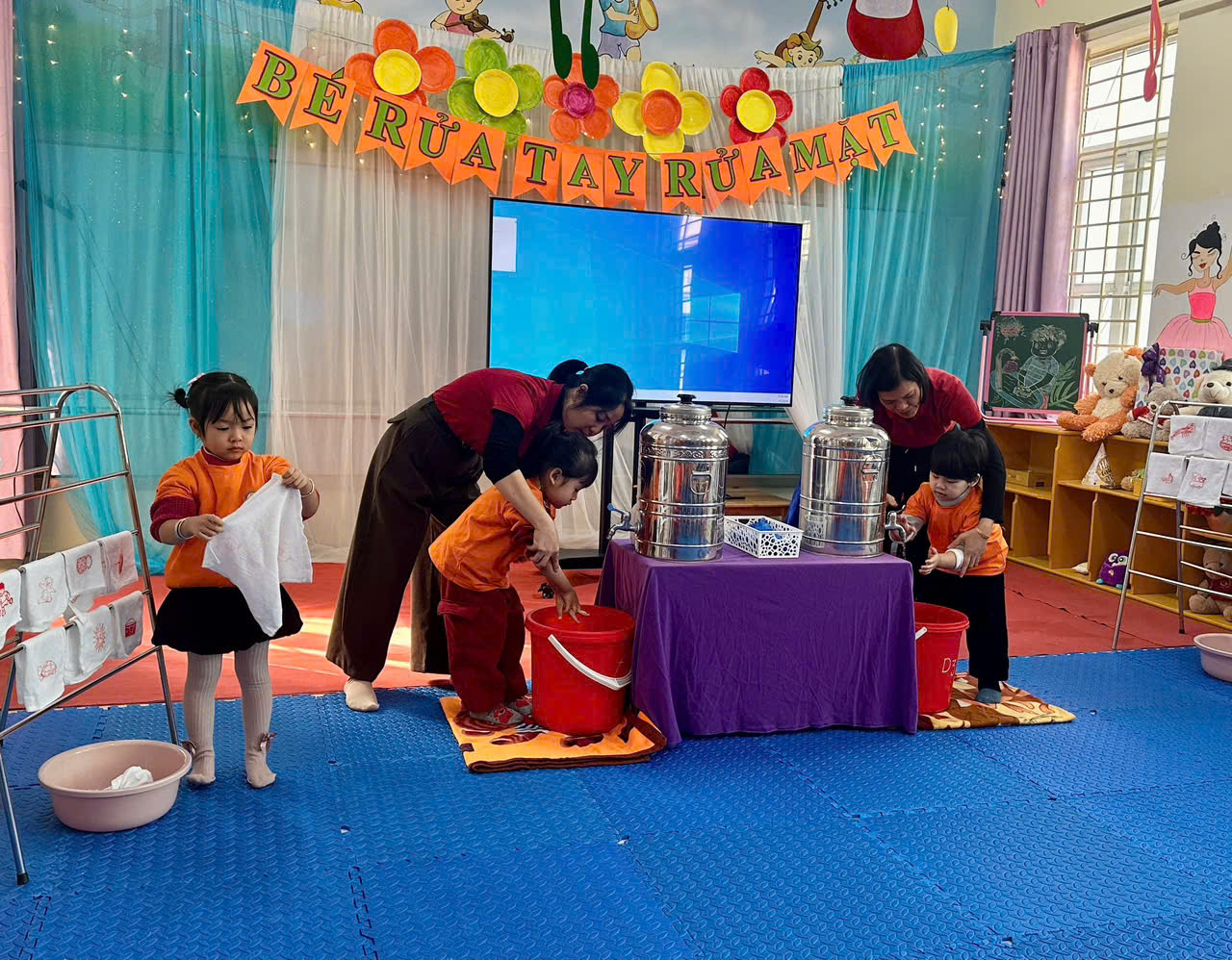 Thông qua việc quan sát các hoạt động chăm sóc hằng ngày, giáo viên cùng phân tích cách hướng dẫn trẻ thực hiện vệ sinh cá nhân, rèn kỹ năng tự phục vụ và nề nếp trong giờ ăn, phù hợp với độ tuổi và tạo sự hứng thú cho trẻ.