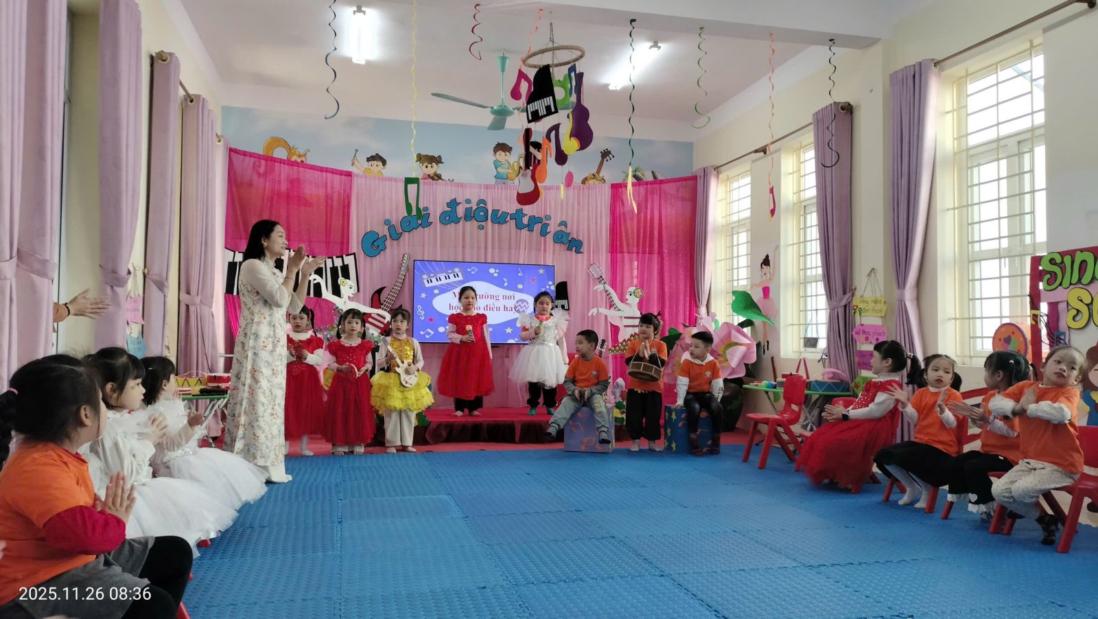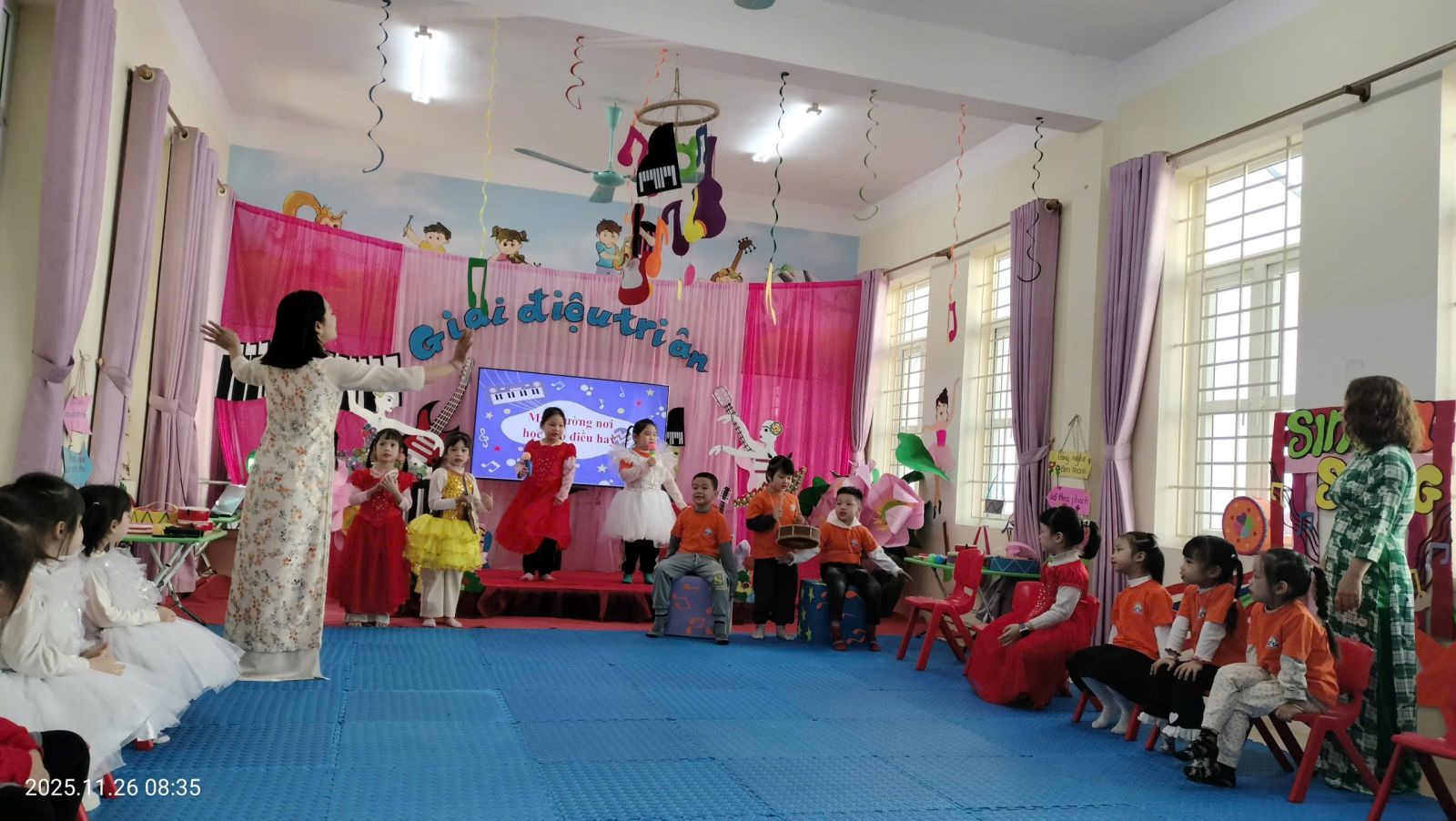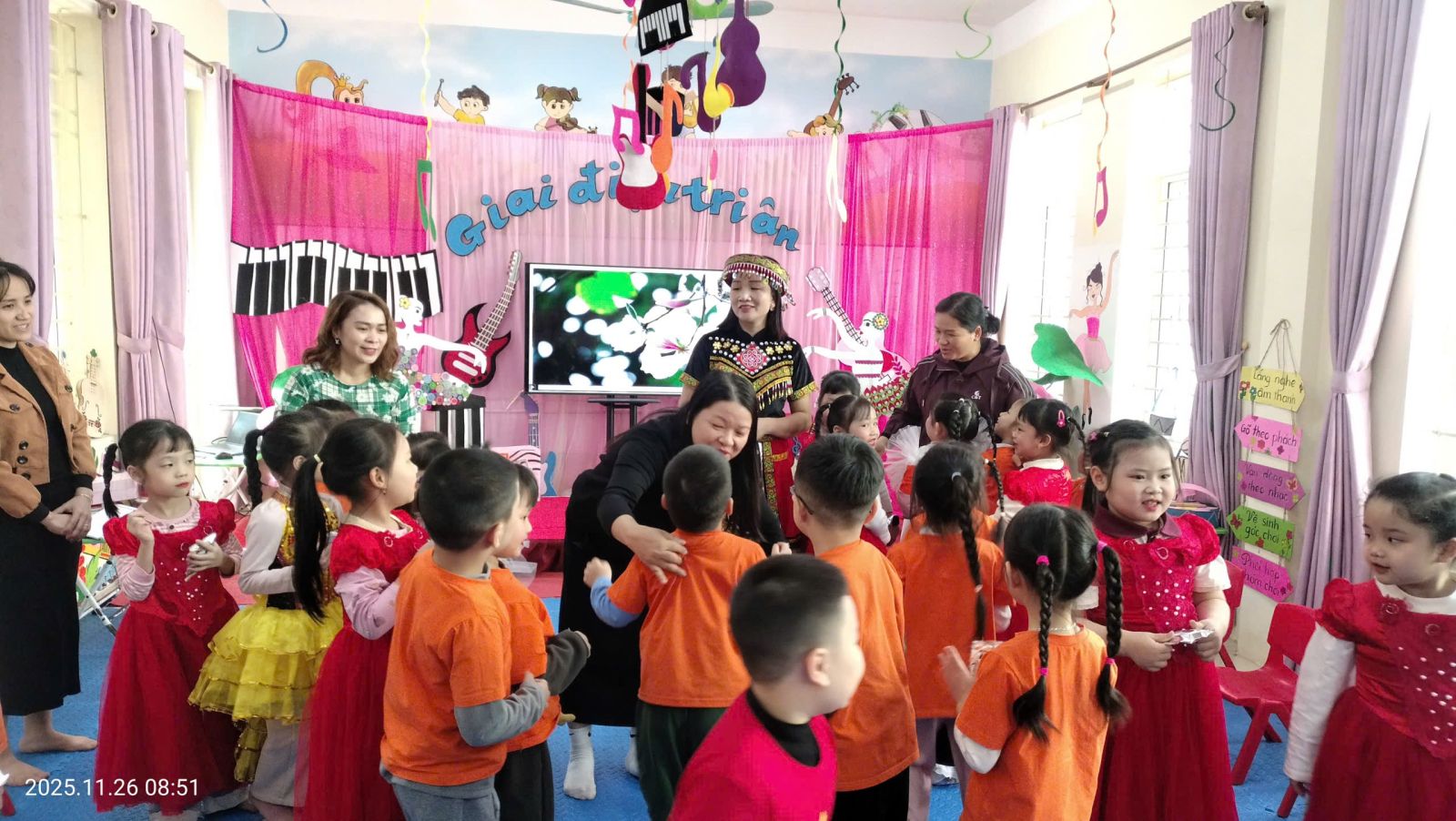 Tiết 1: Hoạt động Âm nhạc: “Giai điệu tri ân” – lồng ghép giáo dục cảm xúc. Tiết 2: Hoạt động chơi ở các góc.