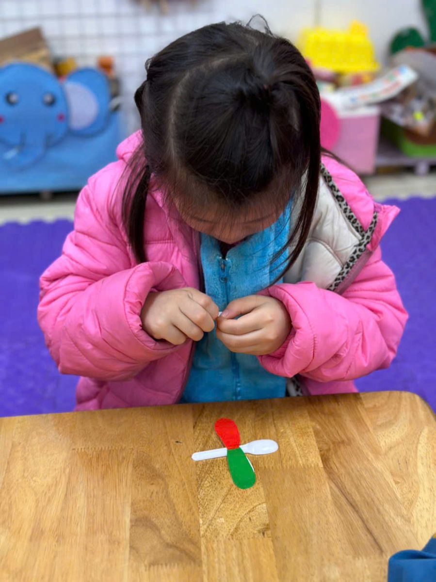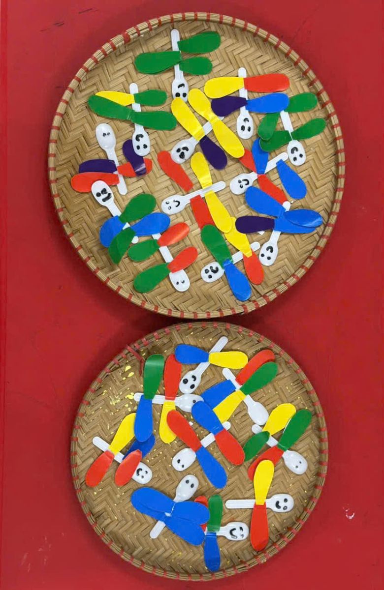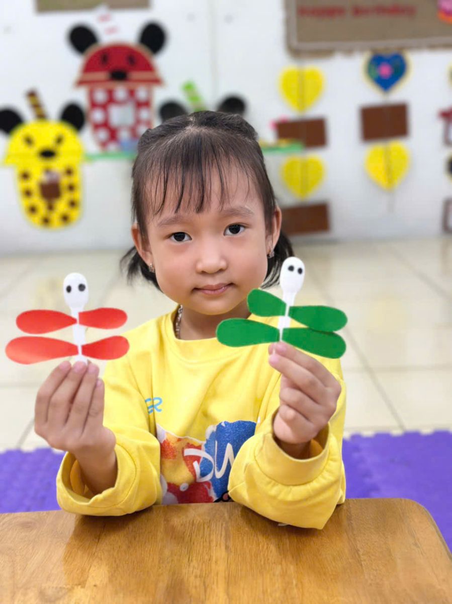 Với đôi bàn tay nhỏ xinh, hôm nay các bé lớp C5 đã cùng nhau tạo nên những chú chuồn chuồn đầy màu sắc từ thìa sữa chua.