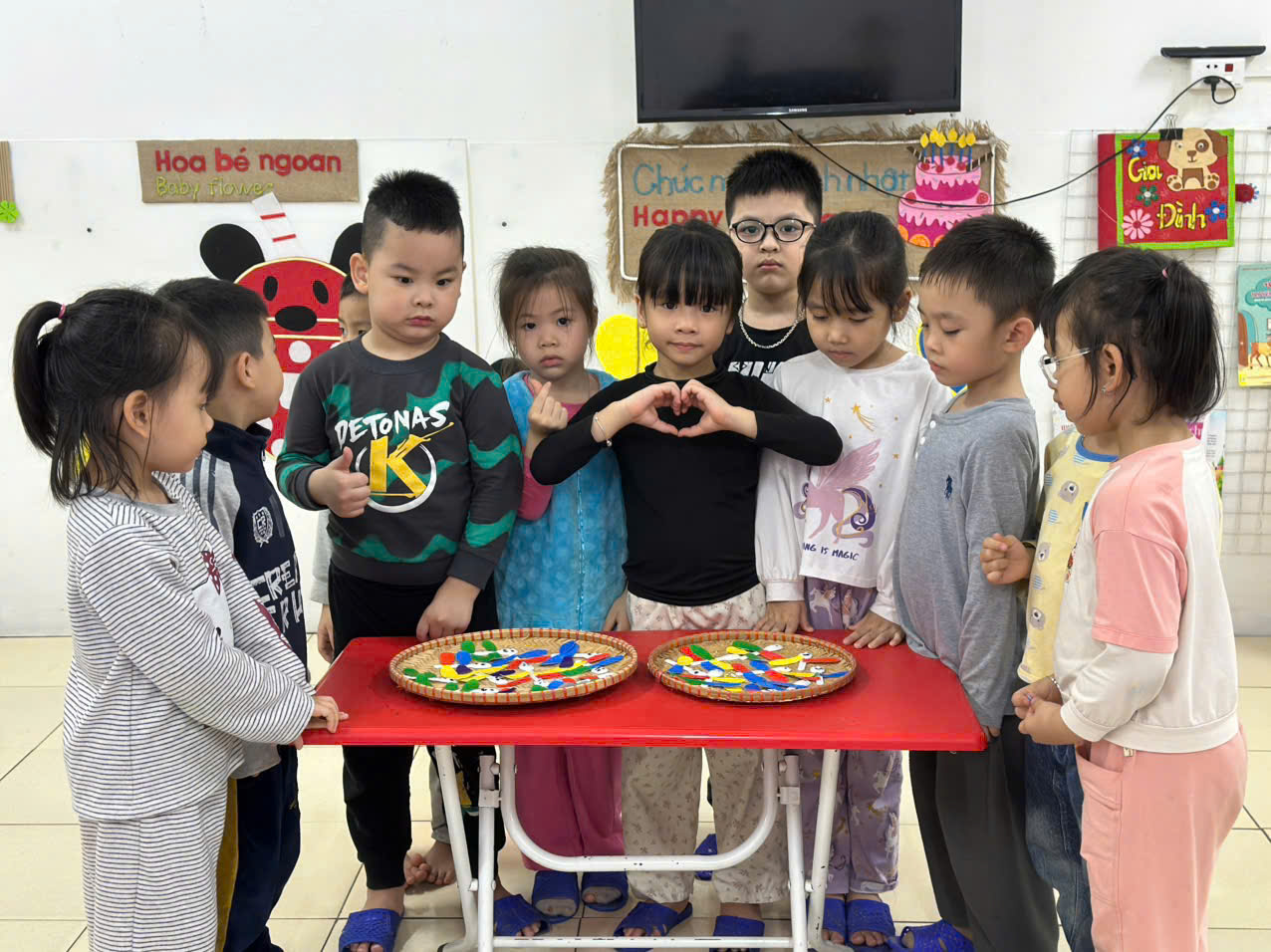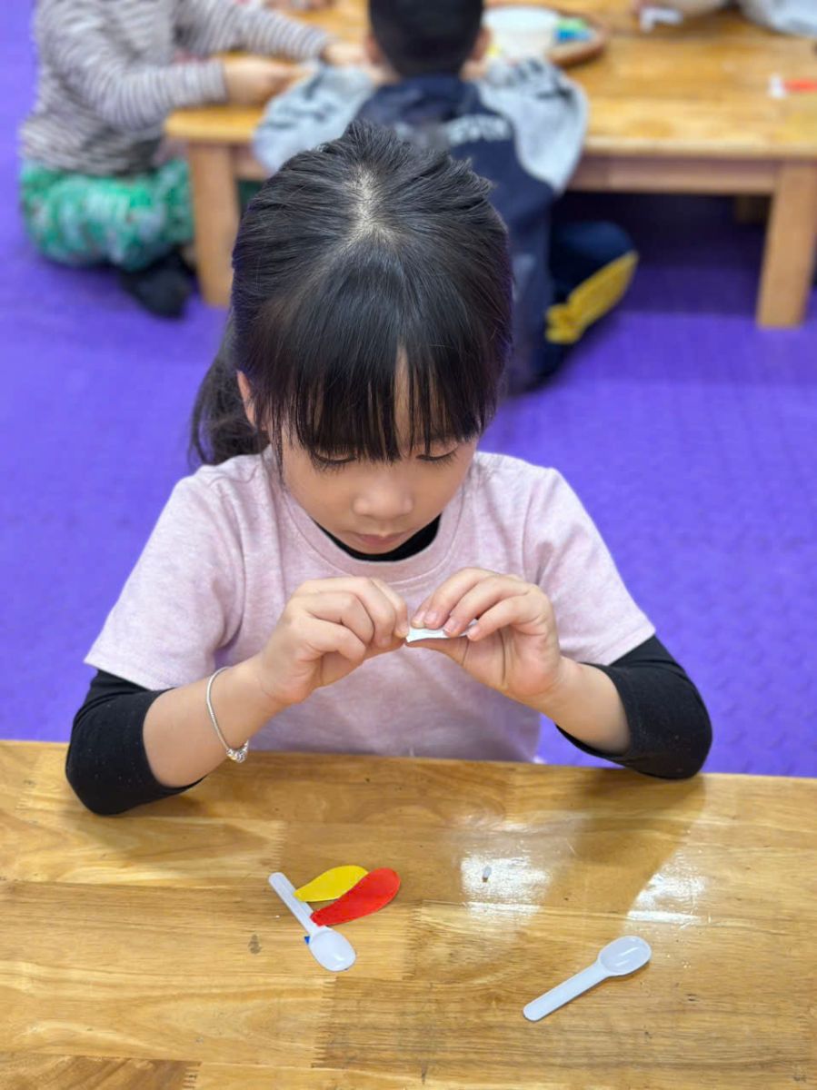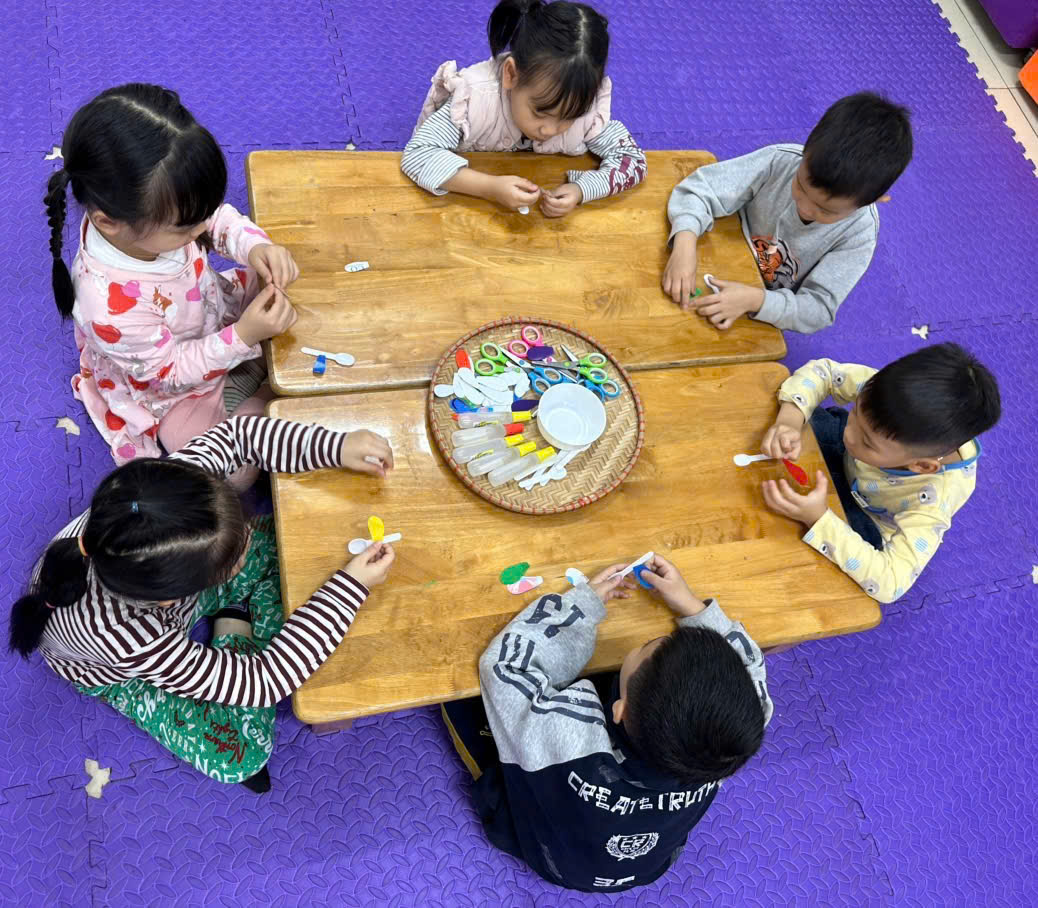 Với đôi bàn tay nhỏ xinh, hôm nay các bé lớp C5 đã cùng nhau tạo nên những chú chuồn chuồn đầy màu sắc từ thìa sữa chua.