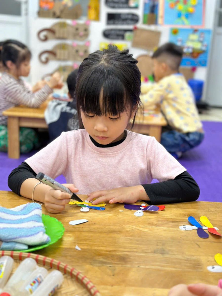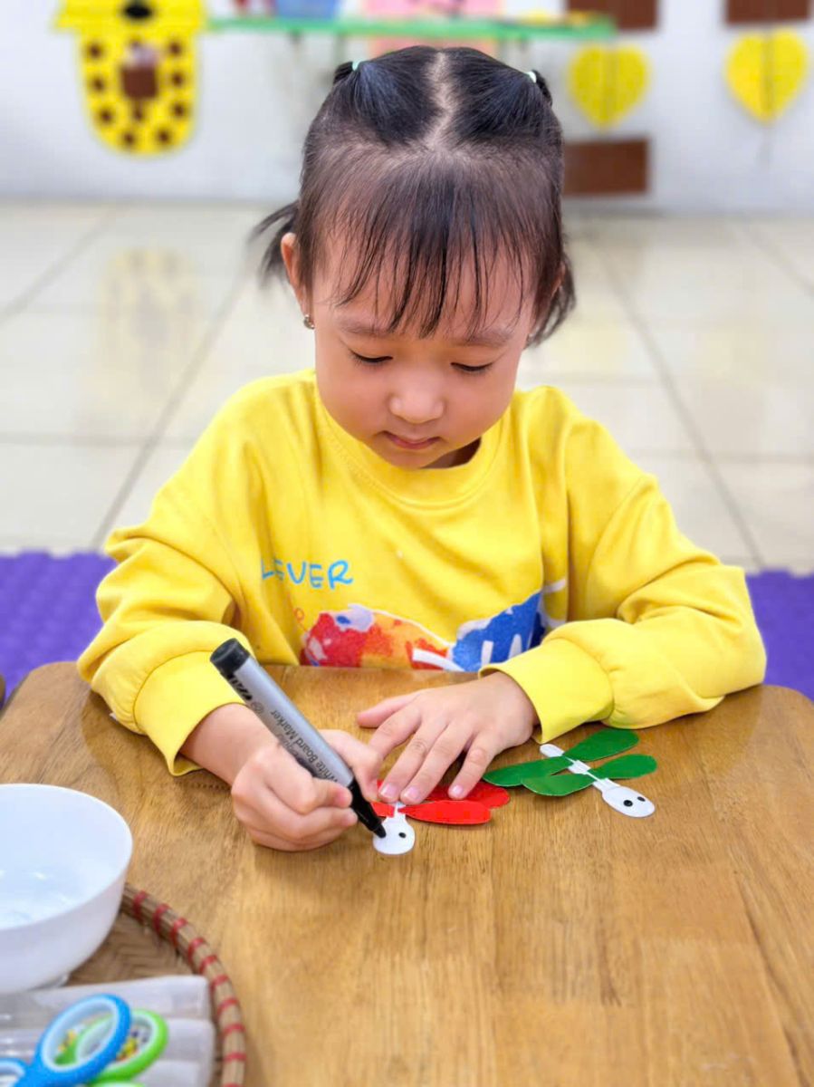 Với đôi bàn tay nhỏ xinh, hôm nay các bé lớp C5 đã cùng nhau tạo nên những chú chuồn chuồn đầy màu sắc từ thìa sữa chua. Giờ tạo hình diễn ra sôi nổi, vui tươi và tràn ngập tiếng cười. Thông qua hoạt động, trẻ đã biết tận dụng vật liệu tái chế và phát triển khả năng sáng tạo, rèn kỹ năng khéo léo như cắt, dán, trang trí và thêm yêu thích các hoạt động nghệ thuật. Mời mọi người cùng ngắm nhìn những hình ảnh đáng yêu của các bạn nhỏ tham gia vào hoạt động tạo hình: “Làm con chuồn chuồn từ thì sữa chua” nha!!!